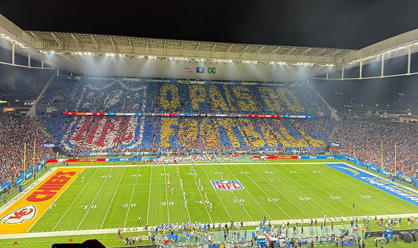 Com um gramado melhor e dessa vez sem críticas negativas (resultado da reforma bancada pela NFL, com um custo de cerca de R$ 2.7 milhões) e com a presença do astro dos Chiefs, Patrick Mahomes, mais uma vez a Arena levou a energia brasileira para o esporte americano, com direito ao belo mosaico "O país do Football".