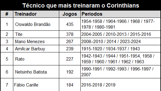 Os técnicos que mais treinaram o Corinthians