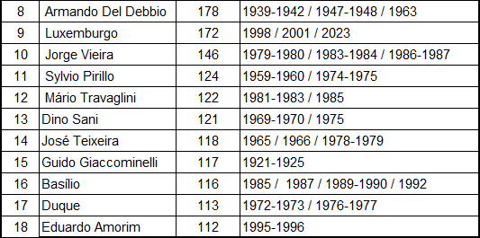Acho que faltou o Fábio Carille aí nessa lista. Se não me engano ele está na 7ª posição.